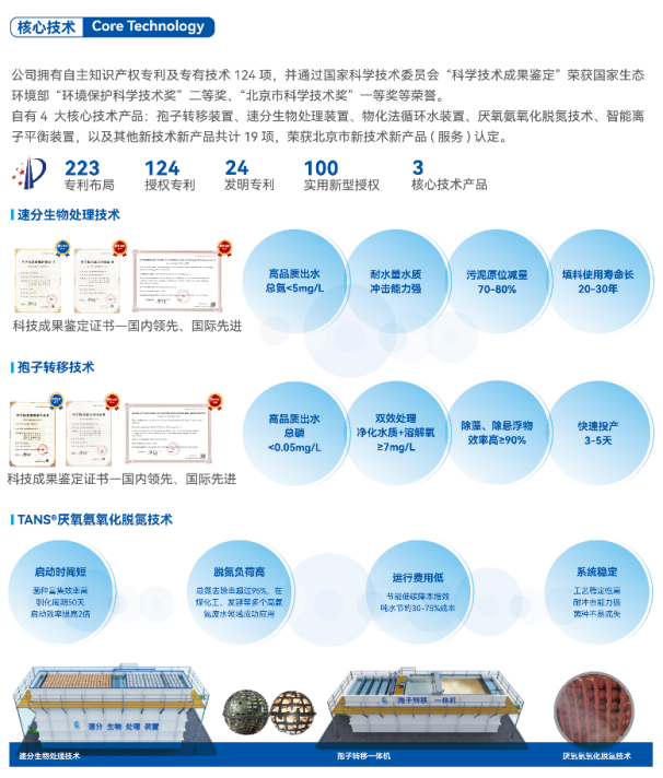 科凈源以系統(tǒng)綜合治理解決方案(科凈源之法)為根本,以核心技術(shù)為引擎,推出污水處理、污水深度處理、高濃度有機污水處理、循環(huán)水處理等領(lǐng)域的4大核心技術(shù)(孢子轉(zhuǎn)移技術(shù)、速分生物處理技術(shù)、厭氧氨氧化脫氮技術(shù)、物化法循環(huán)水技術(shù)),先后突破超極限脫氮、超極限除磷、低溫污水生物處理、污泥源頭減量、微污染水生物處理等技術(shù)難題,構(gòu)建起集咨詢、規(guī)劃、設計、資金、制造、實施、運營為一體的全生命周期綜合管理服務體系及系統(tǒng)綜合治理解決方案。